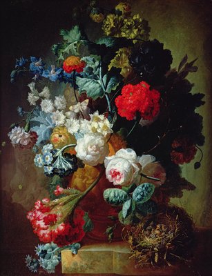 Stillleben mit Blumen, darunter Mohnblumen, Löwenmäulchen und ein Vogelnest mit Nestlingen(A still life of flowers including poppies, antirrhinums, and a bird's nest with fledglings)Jan van Os |