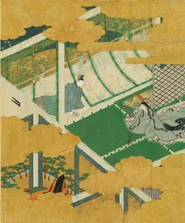 Mann und Frau in einem Pavillon, Illustration aus dem 'Taishokkan'(Man and woman in a pavilion, illustration from the 'Taishokkan' (ink & colour on paper))Japanese School |