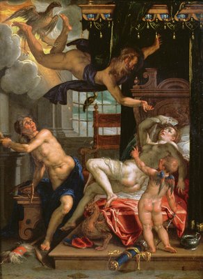 Jupiter und Danae(Jupiter and Danae (oil on copper))Joachim Wtewael or Utewael |