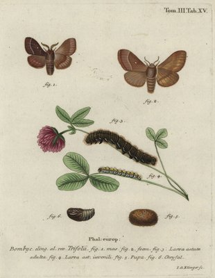 18. jahrhundert · xviii. jahrhundert · xviii · c18. · farbe · gravur · insekt · tier · tierwelt · noctuae spiriling · noctua hera · noctua dominula · scharlachrote tigermotte · callimorpha dominula · jersey-tigermotte · euplagia quadripunctaria · handkoloriert · kupferplatte johann · christoph esper · die schmetterlinge in abbildungen nach der natur · schmetterling · entomologie · lepidoptera · pupa · larve · raupe · metamorphose · insekt · motte · johann carl bock · / Bridgeman Images