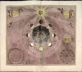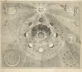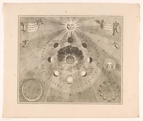 Karte der Erde mit den verschiedenen Positionen von Mond und Sonne(Kaart van de aarde met de verschillende standen van de maan en de zon)Johannes van Loon(print maker),Pieter Schenk (I)(publisher),Gerard Valck(publisher) |
