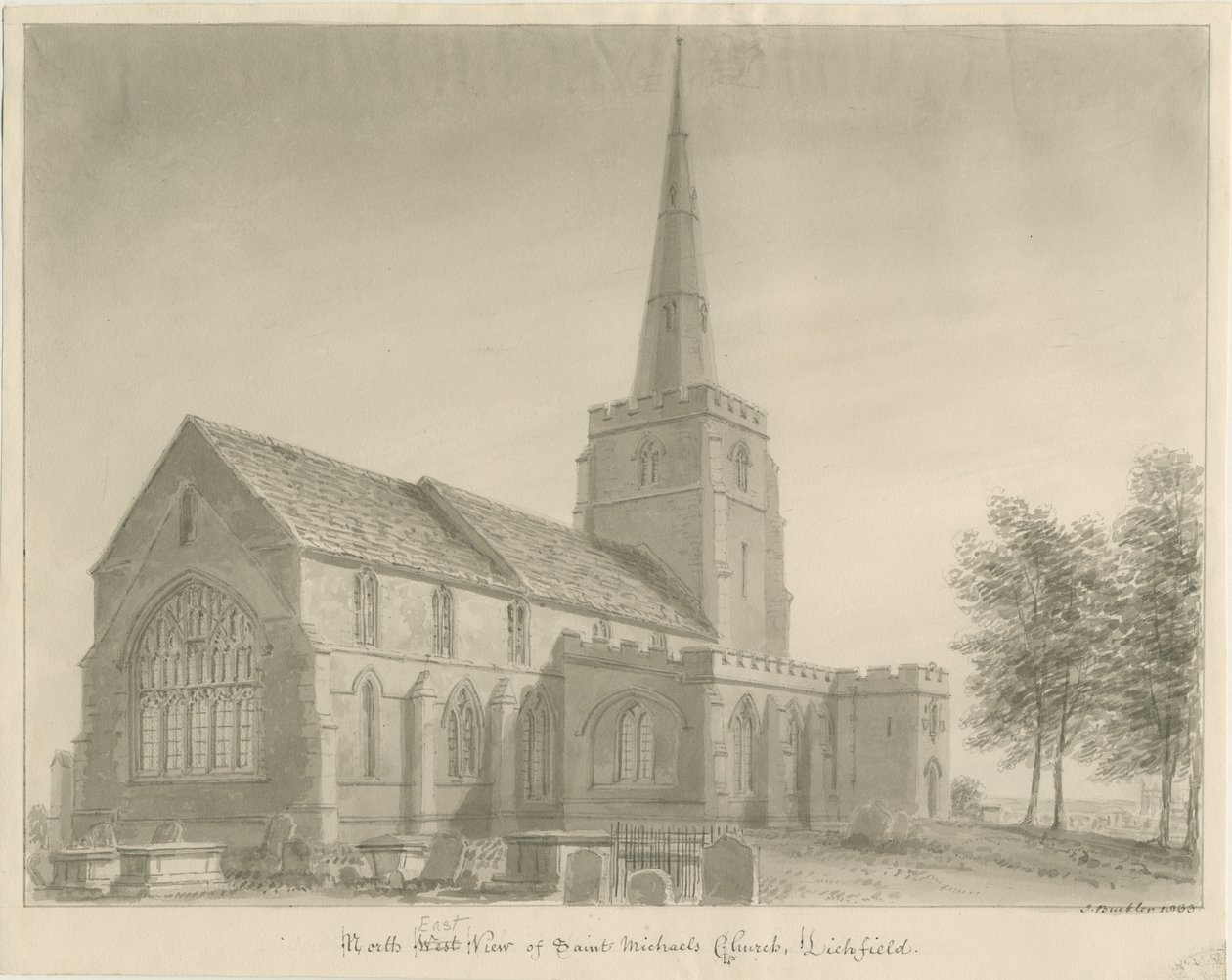 Lichfield - St. Michael's Church: Sepia-Zeichnung(Lichfield - St. Michael's Church: sepia drawing)John Buckler |
