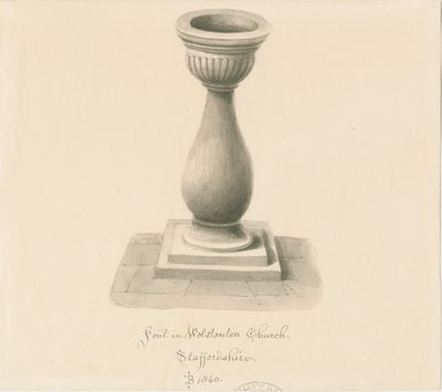 Taufbecken in Leek Kirche: Sepiazeichnung, 1844(Font in Leek Church: sepia drawing, 1844)John Buckler |