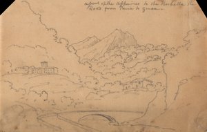 berg · papier · skizze · bäume · gebäude · natur · studium · spur · gekritzel · bleistift · santa francesca cava · september