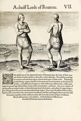 secota · religiös · indianischer abstammung · sakerdotisch · robe · rotauge · landschaft · kanu · männlich · indianischer abstammung · Private Collection / Bridgeman Images |