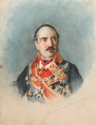 mann · general · heck · beamter · ausgezeichnet · uniform · glatze · schnurrbart · blues · elfenbein · general · espartero
