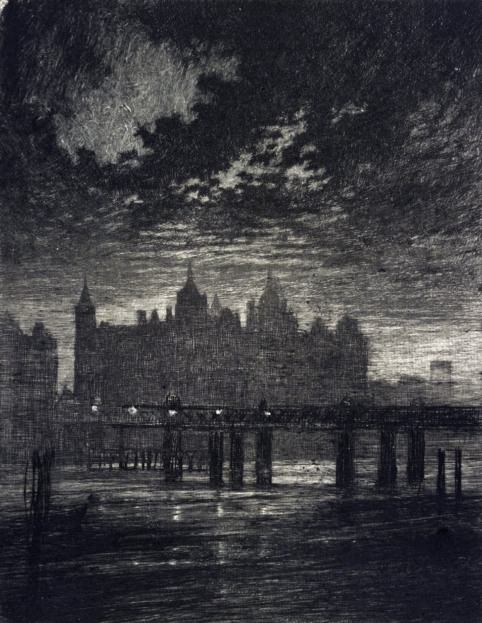 vereinigtes königreich · europa · pennell joseph (1858-1926) · illustrator · 20. jahrhundert · whitehall court · zeichnung · england · 1900er · abend · london · vereinigtes königreich · joseph pennell · skyline · / Bridgeman Images