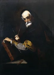 Philosoph mit einem Buch, einem Kompass und einem Goniometer, 1630(Philosopher with a book, a compass and goniometer, 1630)Jusepe de Ribera |