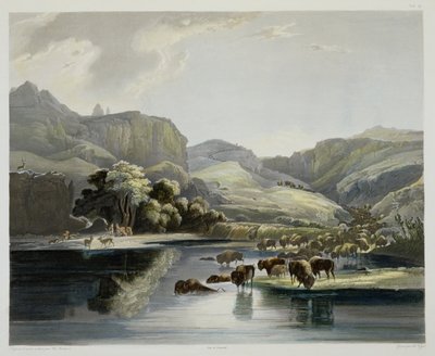 Herden von Bisons und Elchen am oberen Missouri, Tafel 47 aus Band 2 von 'Reisen im Inneren Nordamerikas', graviert von Carl Vogel (1816-51) 1844(Herds of Bison and Elk on the Upper Missouri, plate 47 from Volume 2 of 'Travels in the Interior of North America', engraved by Carl Vogel (1816-51) 1844 (aquatint))Karl Bodmer |