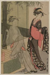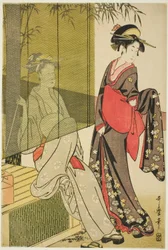 Zwei Frauen hinter einem Bambusvorhang, um 1797 oder 1798(Two Women by a Bamboo Blind, c. 1797 or 1798. )Kitagawa Utamaro |