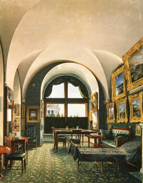 büro · schreibtisch · fenster · hell · bett · russisch · gewölbt · decke · streng · möbel · # 52 · interieur · dekor · State Hermitage Museum, St. Petersburg, Russia / Bridgeman Images