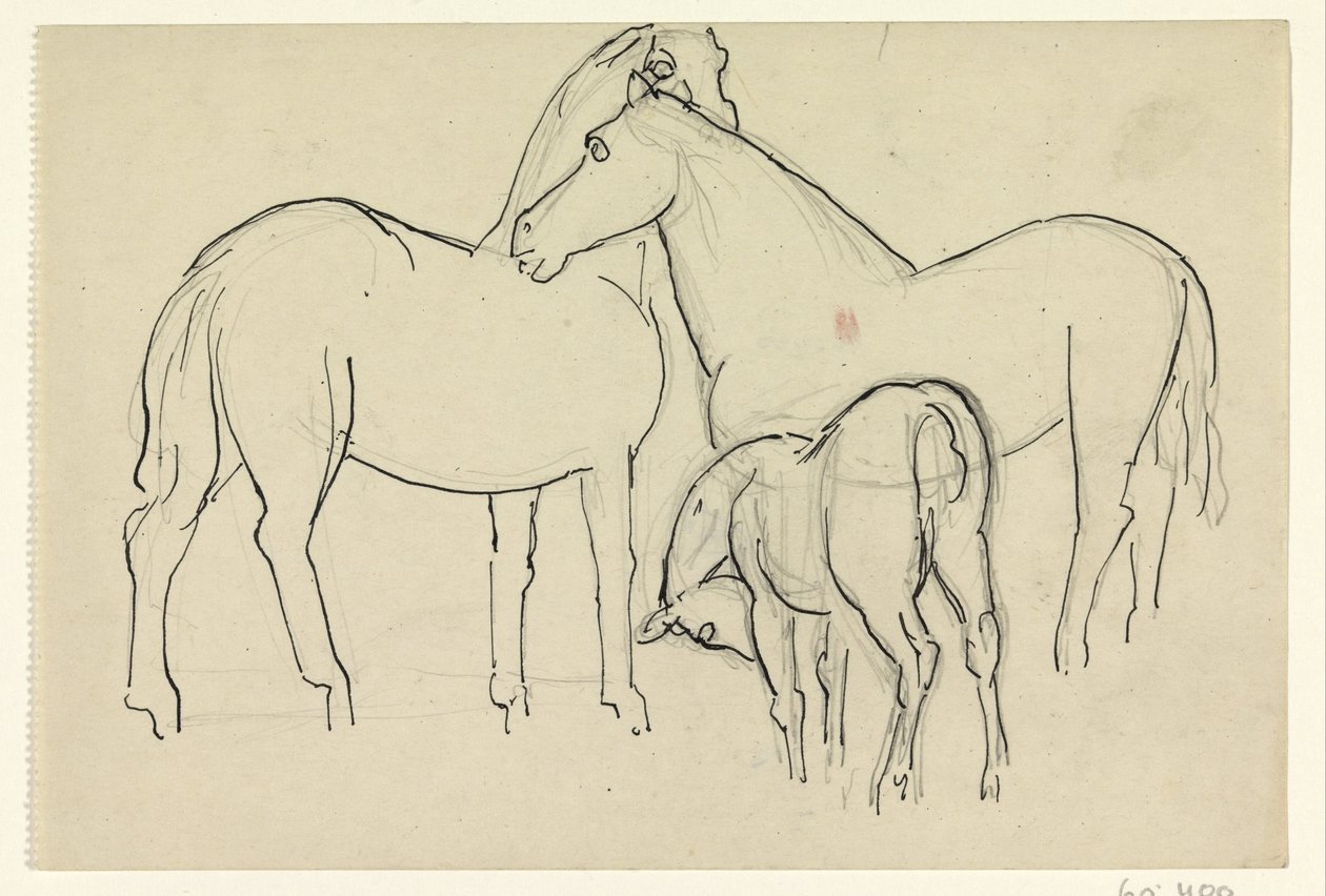 Zwei Pferde und ein Fohlen(Twee paarden en een veulen)Leo Gestel(draughtsman) |