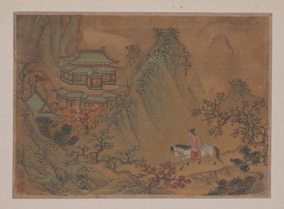 spielraum · tier · gebäude · gebäude · leute · mann · mann · männer · tiere · pferde · pferd · haus · häuser · landschaft · berg · berge · land · china · chinesisch · grün · kerl · museum · geographie · reise · pavillion · ming · position · jahrhundert · reisende · reisender · zu pferde · dynastie · ming dynastie · eine person · bergabhang · farbe · getroffen · metropolitanmuseum der kunst · das metropolitanmuseum der kunst · 16. jahrhundert · sechzehntes jahrhundert · landscape · ink and colour on silk · heritage art · ink and colour on silk · miniature from album of eleven paintings · miniature from album of eleven paintings · liu yen · liu · Heritage Art/Heritage Images
