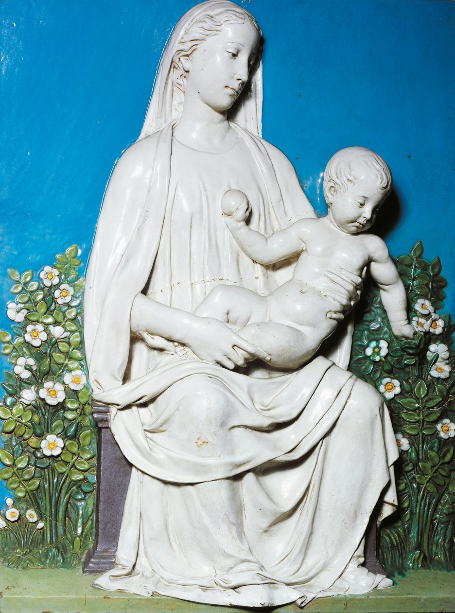 Madonna des Rosengartens, ca. 1450-55 (Terrakotta)(Madonna of Rose Garden, c.1450-55 (terracotta))Luca Della Robbia |