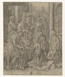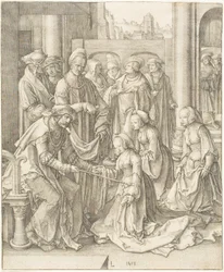 Esther kniet vor Ahasverus(Esther knielt voor Ahasverus)Lucas van Leyden(print maker),Lucas van Leyden(after own design by) |