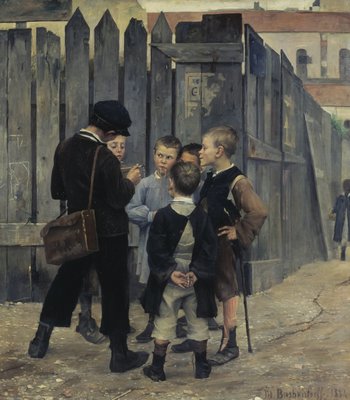 außen · seitenansicht · satchel · genuß · plaudern · naiv · unschuldig · abbinden · gegenstand · im freien · durchgang · yard · youthful · person · konzept · draußen · erwägen · gehilfe · ablenkung · plotten · zicklein · unterhalten · zeitvertreib · entspannend · tageszeit · vollkörper · begleiter · voller körper · volle länge · freund · aufmerksam · gefährte · in voller länge · mehrere · vertrauen · beutel · zuhörer · naivität · vollständiger körper · solicitous · rücksichtsvoll · dialog · kamerad · knabe · junger mann · kumpel · seite-ansicht · nur jungen · gruppierung · 19. jahrhundert · menschliches wesen · heraus-von-tür · mittlere gruppe leute · weg gegenüberstellen · grundlegendes alter · dialog · 19.jahrhundert · art media · attentiveness · maria konstantinowka bashkirtseff · maria bashkirtseff · mariya bashkirtseff · bashkirtseff · maria konstantinowka · stehen · straße · leute · rückseitige ansicht · spaß · kindheit · mann · junge · jungen · kind · kinder · gesicht · gruppe · jung · kommunikation · neugier · kopf · durchdacht · familie · straße · sitzung · künste · anstrich · erholung · land · jugend · spielen · unterhaltung · französisch · frankreich · zaun · körper · besprechen · kunst · lebensstil · freundschaft · beutel · messwert · strategie · unterhaltung · hören · menschlich · versammlung · farbe · farbe · zusammengehörigkeit · playful · unfug · unschuld · profil · begleitung · vorderansicht · sperre · jugendlich · in verbindung stehen · allee · freund · gruppe · ukraine · ukrainisch · bruder · gasse · frontseite · position · jahrhundert · unterhaltung · denken · konferenz · sprechen · hörfähigkeit · gespräch · interesse · Art Media/Heritage Images
