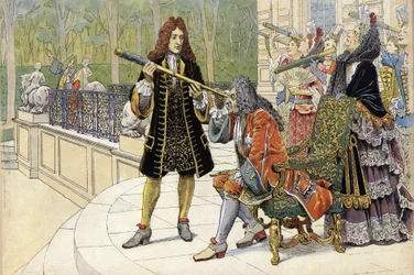 Louis XIV und Jacques Cassini(Louis XIV and Jacques Cassini colour litho)Maurice Leloir |