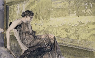 Penelope schaut gedankenverloren auf ihren Webstuhl(Penelope kijkt in gedachten verzonken naar haar weefgetouw)Max Klinger(print maker),Rudolf Leuckart |