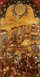 Die Eroberung Mexikos, Tafel XX, ca. 1696-1715(The Conquest of Mexico, Panel XX, c.1696-1715 (paint on wood))Miguel Gonzalez |
