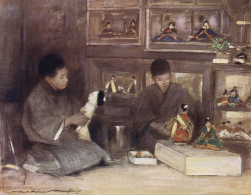 japan · japanisch · früh · 20. jahrhundert · malerisch · aquarelle · porträt · asiatisch · asien · exotisch · ein spielzeug · geschäft · puppe · Puppen · Private Collection / Bridgeman Images · / Look and Learn