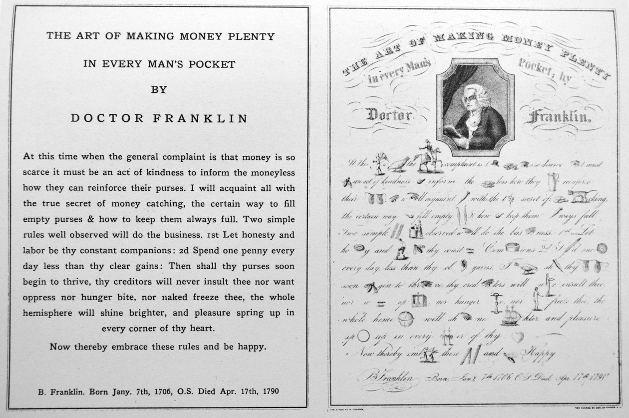 Die Kunst, Geld in jeder Mannes Tasche reichlich zu machen, von Doktor Franklin(Currier & Ives Illustration 19th Century. The Art of Making Money Plenty in Every Mans Pocket Money, by Doctor Franklin)N. and Ives, J.M. Currier |