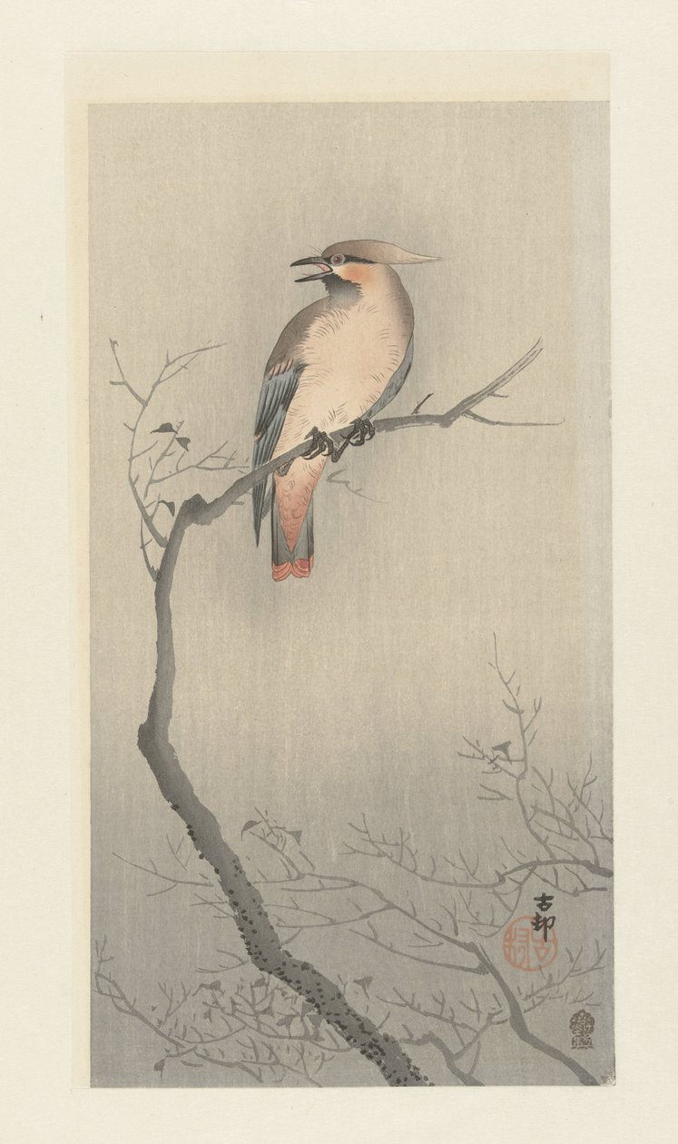 Japanische Seidenschwanz auf Ast(Japanse pestvogel op tak)Ohara Koson(print maker),Akiyama Buemon(publisher) |