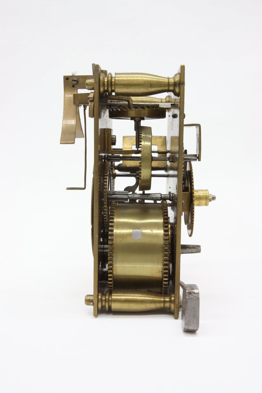 Das Uhrwerk einer Tischuhr, von links, ca. 1660(The movement, of a table clock, from the left, c. 1660 (wood & brass))Pieter Visbach |