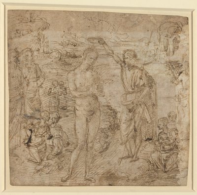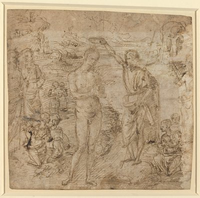 a) Die Taufe Christi; b) Gewandete Figur mit Buch und Mann mit Axt, um 1475(a) The Baptism of Christ; b) Draped Figure Holding a Book and Man Wielding an Ax with a Figure, c.1475 (pen and brown ink))Pietro Perugino |