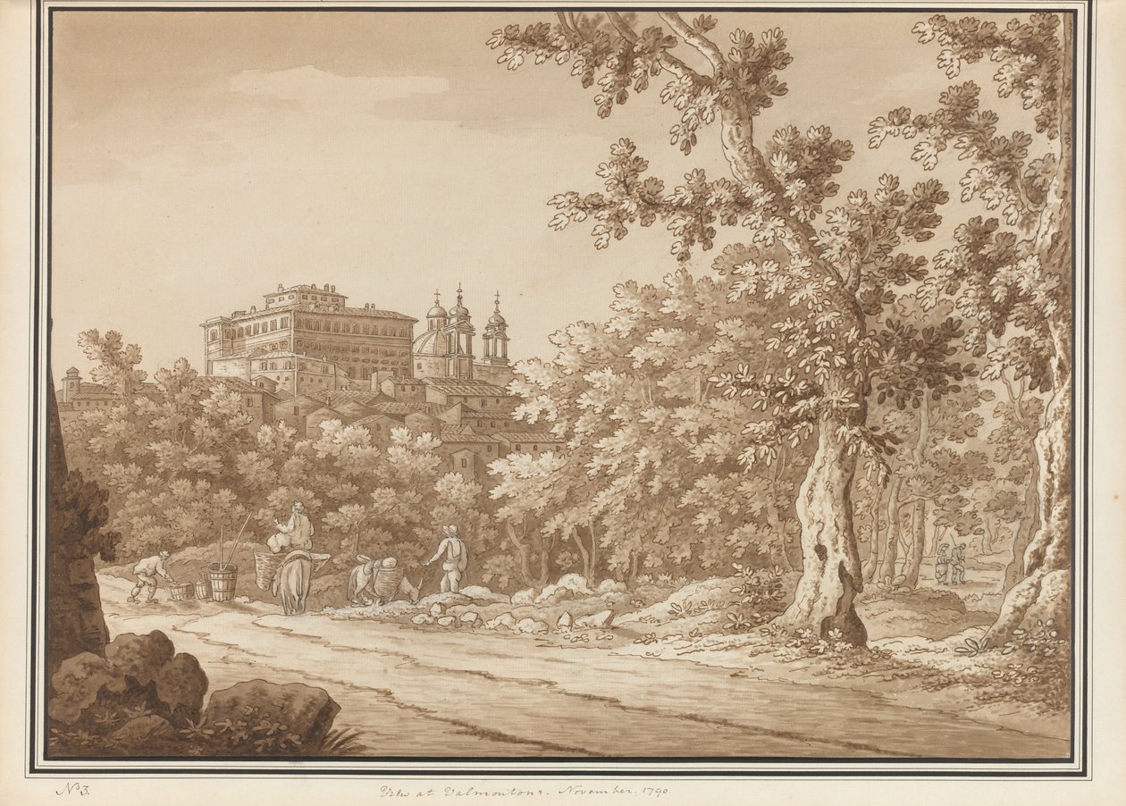 Ansicht bei Valmontone, aus einem Band mit 66 Ansichten, die im November 1790 in der Umgebung von Rom und Abruzzen aus der Natur gezeichnet wurden(View at Valmontone, from a volume of 66 views drawn from nature in the neighbourhood of Rome and Abruzzo, November 1790 (pen and ink wash on paper))Richard Colt Hoare |