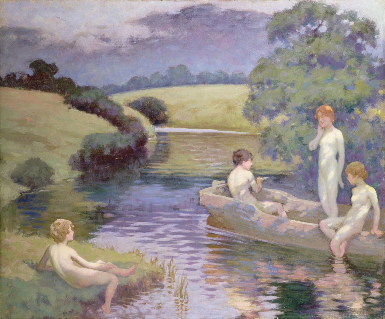 c19th · c20th · weiblich · männlich · junge · mädchen · mutter · vater · familie · ruderboot · nackt · nudisten · landschaft · freiheit · nacktheit · nacktheit · nacktheit · Private Collection / Bridgeman Images |