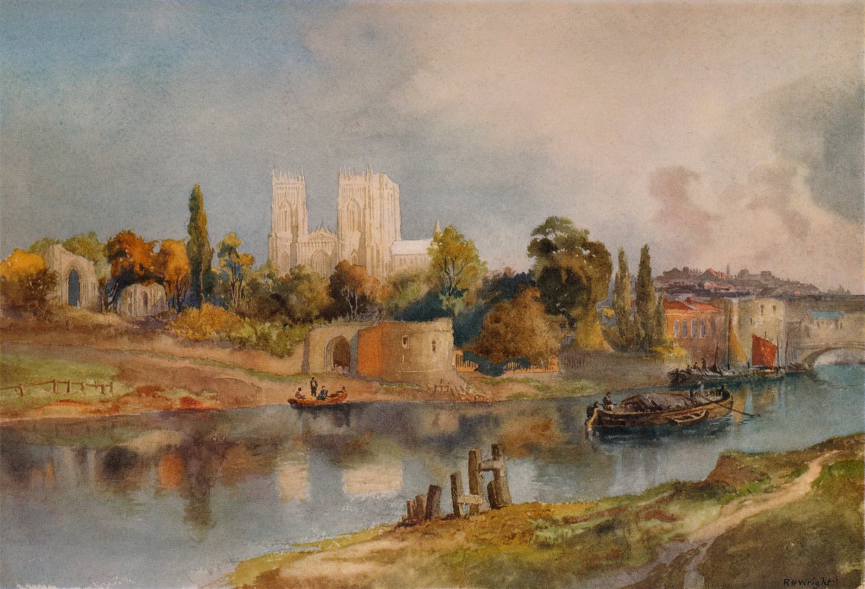 transport · transport · f gordo · natur · draußen · stadt · fluß · szenisch · baum · gebäude · gebäude · england · fromm · wand · boot · boote · betrieb · york · land · religion · reflexion · britisch · geographie · kathedrale · englisch · kirche · farbe · farbe · yorkshire · grafschaft · christentum · walled stadt · position · jahrhundert · lastkahn · großbritannien · katalog · dreißiger jahre · konzept · riverbank · nordyorkshire · reflektiert worden · watercolour · york minster · wassertransport · dreißiger jahre · stadt-wände · 1900s · 20. jahrhundert · watercolour · landscape · frederick john · richard henry wright · wright · richard henry · cecil reginald grundy · grundy · cecil reginald · c reginald grundy · frederic gordon · frederic gordon roe · frederick john nettleford · nettleford · frederick john nettlefold · frederick nettlefold · catalogue of pictures · emrose and sons ltd · emrose and sons · The Print Collector/Heritage Images |