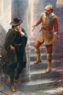 Great Heart bittet Mr Fearing einzutreten, aus The Pilgrims Progress veröffentlicht von John F Shaw & Co, ca. 1900(Great Heart entreats Mr Fearing to come in, from The Pilgrims Progress published by John F Shaw & Co, c.1900's (colour litho))Robert Ambrose Dudley |