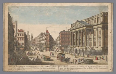Ansicht des Mansion House in London(Gezicht op het Mansion House te Londen A view of the Mansion House (...) (title on object) Londen (series title))Robert Sayer(publisher),Thomas Bowles (II)(print maker),Thomas Bowles (II)(after own design by) |