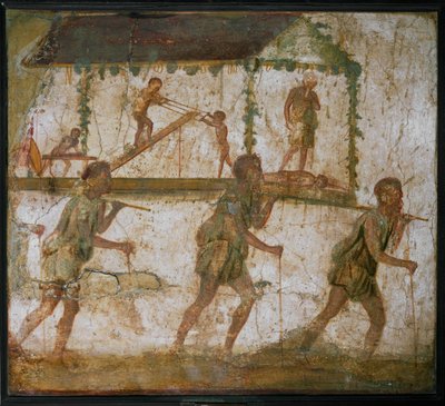 fresko · wandgemälde · fresken · wandmalerei · wandgemälde · kunst · kunst · kunstwerke · kunst (bildende kunst) · gemälde · gemälde · italien · italienisch · italiener · italienisch italienisch italienisch italienisch · italienisch italienisch italienisch italienisch italienisch italienisch italienisch italienisch italienisch · europa · europäisch · europa · pompei · pompeji · pompejan · altes rom · antikes rom · römisches reich · römische zivilisation · antike · antik · antiquitäten · religionen · traditionelles fest · kunst · kaiserzeit · vierter stil · fresko · erstes jahrhundert n.chr · antike · gemaltes bild · altes rom · drei personen · tragend · zimmermann · kampanien · im freien · antiquitäten · parade · prozession · traditionelle kultur · alte religionen · ca. 1. jahrhundert · römische zivilisation · archäologisches artefakt · europa · gemälde · horizontal · römisch · pompei (reperto da) · kaiserzeit (27 v. chr. – 476 n. chr.) · neapel museo archeologico nazionale (archäologisches museum) · pompejanische stile (spätes 2. jahrhundert v. chr. – 79 n. chr.) · vierter stil (35 v. chr. – spätes 1. jahrhundert n. chr.) · pompejanischer stil stile · Museo Archeologico Nazionale, Naples, Campania, Italy / Bridgeman Images