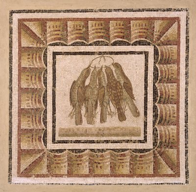 Fünf tote Drosseln an einer Schnur (Mosaik)(Five dead thrushes strung on a cord (mosaic))Roman Roman |