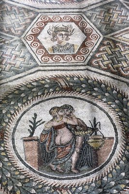 Erotisches Bodenmosaik, Villa Romana del Casale, Piazza Armerina, Sizilien, Italien(Erotic floor mosaic, Villa Romana del Casale, Piazza Armerina, Sicily, Italy (photo))Roman |