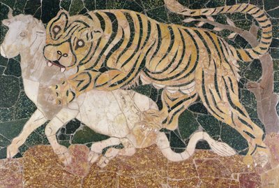 Tafel, die einen Tigerangriff darstellt(Panel depicting a tiger attacking (marble))Roman |