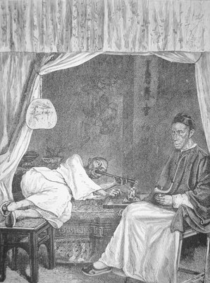 Chinesische Opiumraucher, Gravur von 1875(Chinese opium smokers, engraving from 1875 (litho))School Chinese |