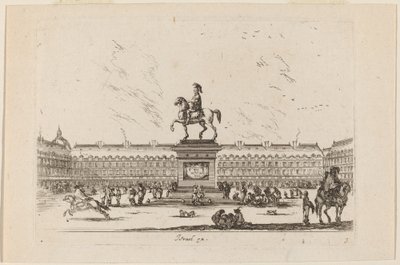 außen · draußen · italien · italienisch · gebäude · leute · künste · land · französisch · frankreich · paris · monarch · kunst · museum · könig · palast · position · jahrhundert · 17. jahrhundert · metropolitanmuseum der kunst · schwarzes u. weiß · schwarzes und weiß · reiterstatue · etching · king louis xiii · louis xiii · stefano della bella · bella · stefano della · della bella · stefano · his majesty · king of france · israel · heritage art · israel henriet · henriet · israël henriet · place roya · Heritage Art/Heritage Images