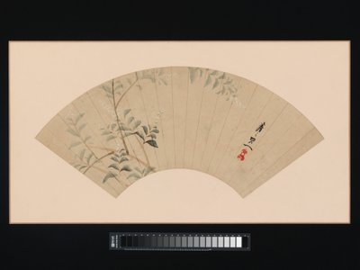 natur · blätter · blume · blumen · betrieb · betriebe · land · ventilator · blatt · wissenschaft · weiß · grün · museum · klee · japan · japanisch · botanisch · position · jahrhundert · tinte · gegenstand · blühen · botanik · gestaltet · farbe · getroffen · metropolitanmuseum der kunst · das metropolitanmuseum der kunst · 19. jahrhundert · hand · 19.jahrhundert · object · fan painting · heritage art · ink and color on paper · folding fan mounted as an album lea · folding fan mounted as an album lea · ink and color on paper · framed · bush clover · suzuki kiitsu · kiitsu · suzuki · Heritage Art/Heritage Images