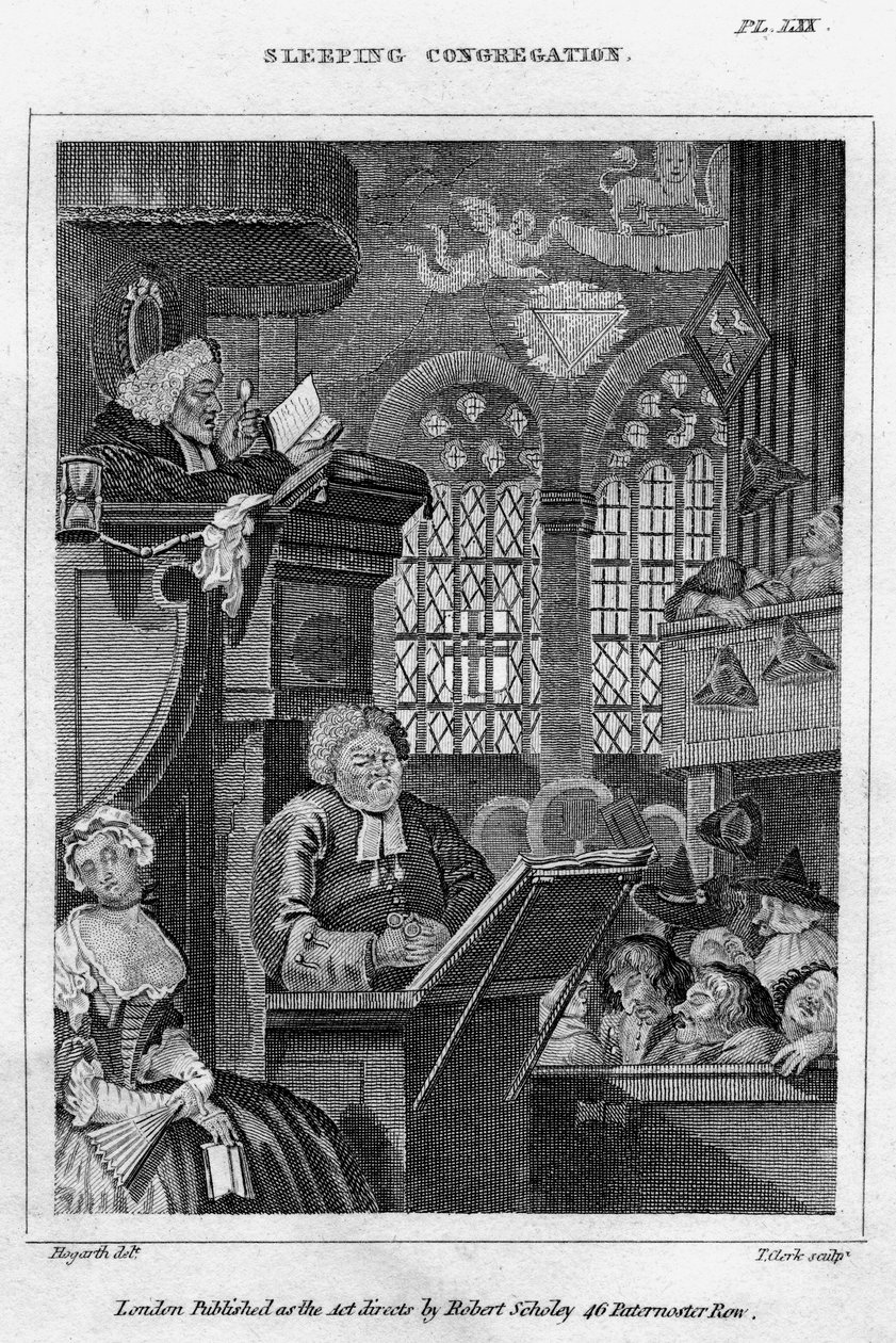 england · frau · frauen · frau · leute · mann · innen · mann · männer · fromm · land · französisch · frankreich · religion · kerl · besetzung · schlaf · schlafen · britisch · englisch · kirche · christ · christentum · position · jahrhundert · versammlung · großbritannien · beruf · schlafend · langeweile · sekretärin · gebohrt · dame · konzept · karikatur · einfarbig · abgelenkt · predigen · monoton · vicar · prediger · schwarzes u. weiß · schwarzes und weiß · 18. jahrhundert · achtzehntes jahrhundert · jean theophilus desaguliers · satire · william hogarth · hogarth · william · w hogarth · desaguliers · jean theophilus · thomas clerk · clerk · thomas · clerk · t · The Print Collector/Heritage Images |