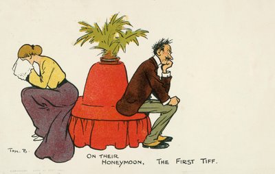 Erster Streit eines Paares in den Flitterwochen(First argument of a couple on honeymoon (colour litho))Tom Browne |