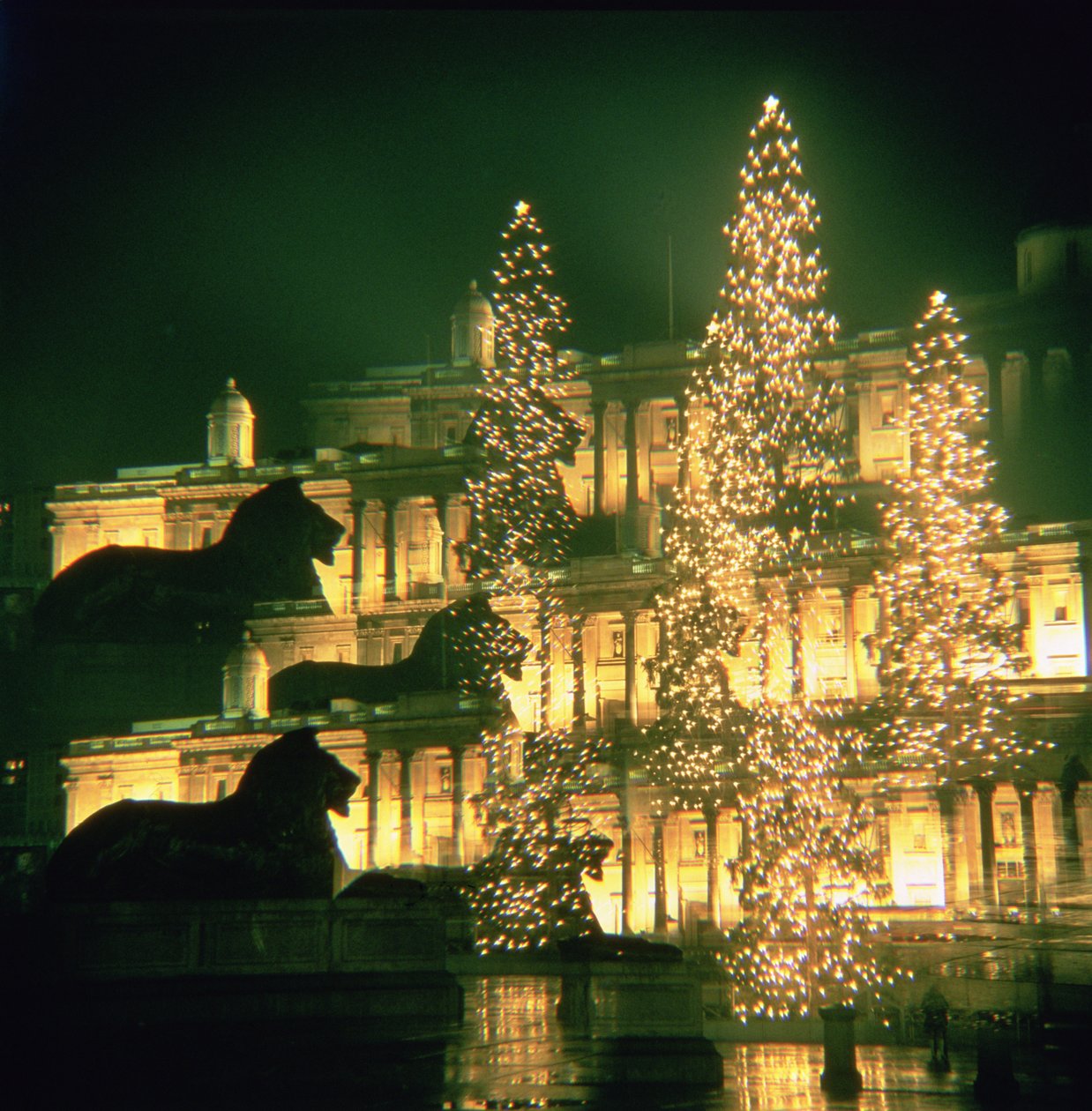 trafalgar square · nacht · löwe · statue · london · baum · dekoration · London, UK / Bridgeman Images |
