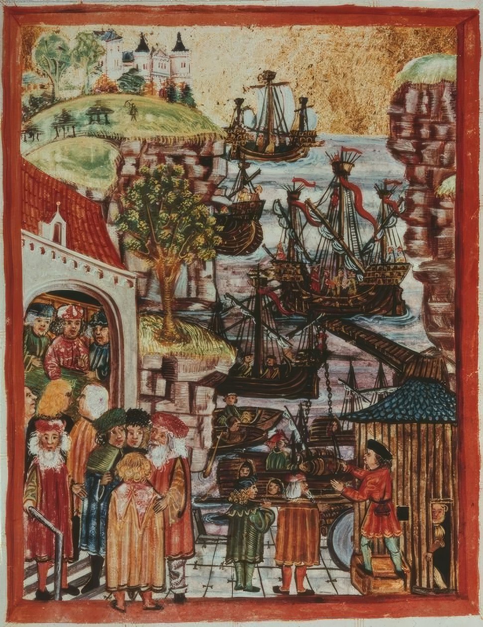 geschichte · gotik · hafen · hafenleben · handel · handschrift · hanse · kogge · schiff · schifffahrt · seehandel · segelschiff · stadtrecht · welthandel · wirtschaft · ökonomie · technik · buchmalerei · malerei · miniatur · hansische · schiffe · Buchmal · / akg-images |