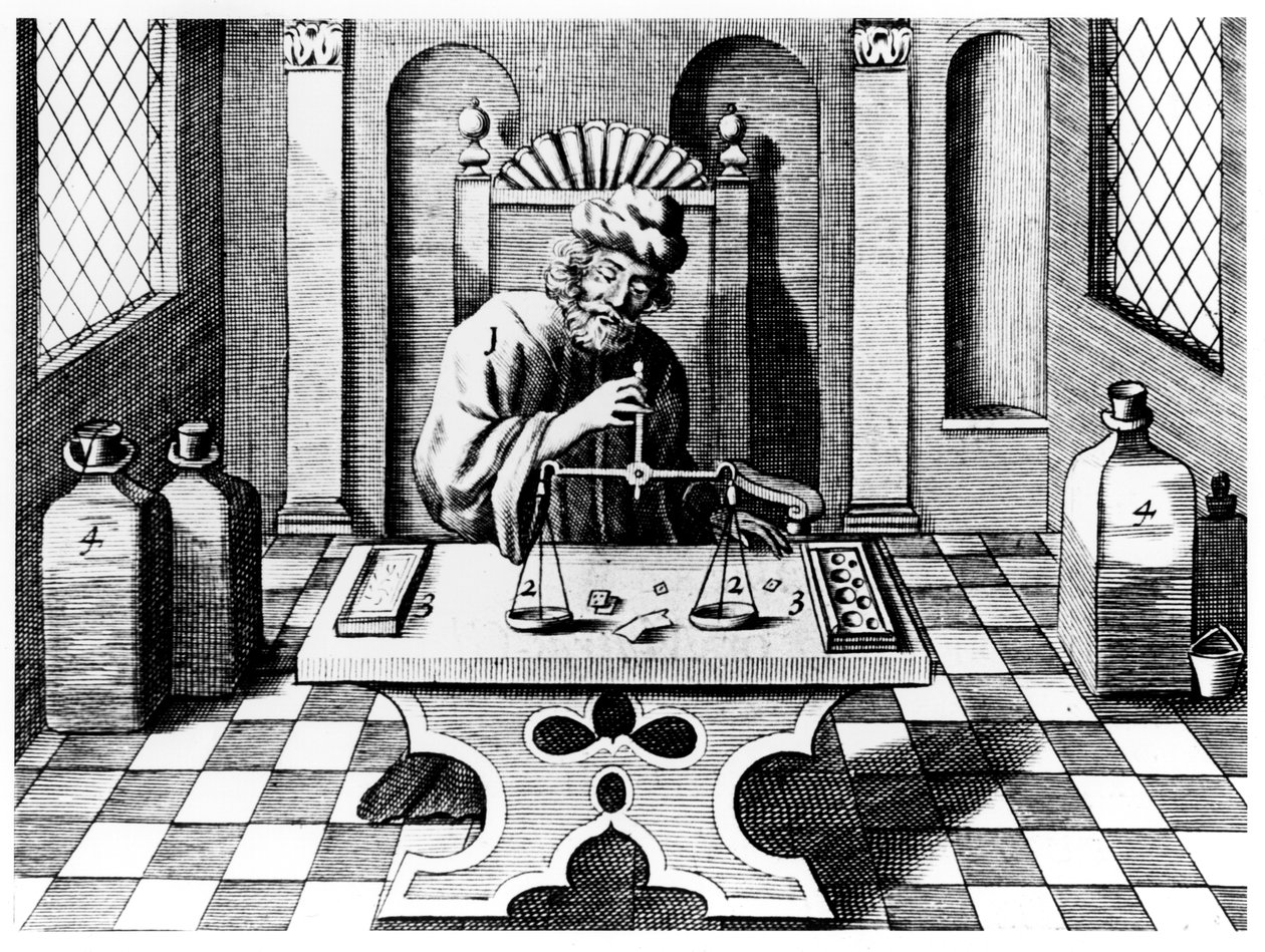 Probierer testet Gold- und Silberproben, 1683(Assayer testing samples of gold and silver, 1683)Unbekannt |