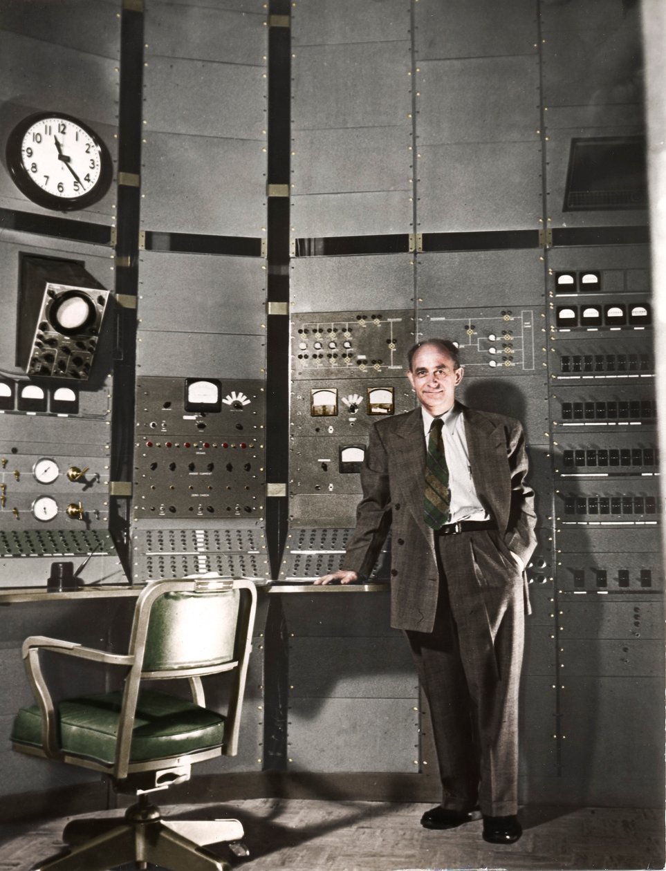 italien · italienisch · lächeln · leute · mann · mann · männer · energie · klage · land · wissenschaft · kerl · besetzung · farbe · farbe · kleid · wissenschaftler · chicago · illinois · position · jahrhundert · beruf · zuerst · konzept · steuerraum · physik · vierziger jahre · kernenergie · pionier · atomenergie · colourised · forties · vereinigte staaten von ameri · vereinigtes s · physiker · 20. jahrhundert · nobelpreis · amerikanisch · amerika · enrico fermi · photograph · portrait · unknown · nuclear powered · enrico · fermi · colorised · The Print Collector/Heritage Images