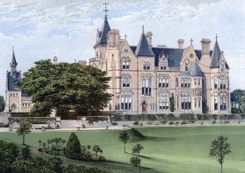 natur · außen · baum · gebäude · gebäude · england · leute · haus · architektur · garten · betrieb · land · britisch · englisch · farbe · farbe · nottinghamshire · königlich · rasen · position · jahrhundert · großbritannien · abgabe · draußen · landhaus · prächtiges haus · 19. jahrhundert · herzog · aristokratie · aristokrat · gotische wiederbelebung · 19.jahrhundert · victorian gotisch · bestwood lodge · engraving · unknown · samuel saunders teulon · teulon · samuel saunders · ss teulon · benjamin fawcett · fawcett · benjamin · af lydon · lydon · alexander francis lydon · alexander lydon · The Print Collector/Heritage Images