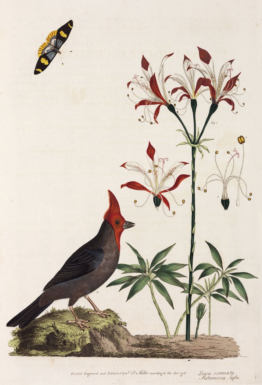 Kreuzschnabel, Lilie und Schmetterling(Crossbill, lily and butterfly)Unbekannt |