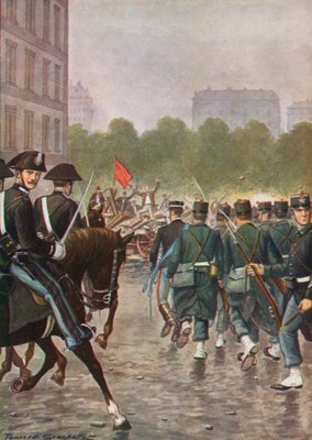 Das Bava-Beccaris-Massaker, benannt nach dem italienischen General Fiorenzo Bava-Beccaris, bezieht sich auf die Niederschlagung weit verbreiteter Unruhen in Mailand im Mai 1898. Italien) von Paolo Giudici(The Bava Beccaris massacre, named after the Italian General Fiorenzo Bava-Beccaris, refers to the repression of widespread riots in Milan in May 1898. Italy) by Paolo Giudici)Unknown Artist |