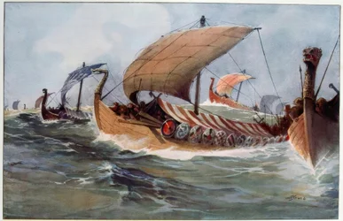 Wikingerboot auf dem Weg nach Normandie(Viking boat in transit towards Normandy, watercolor)Unknown artist |